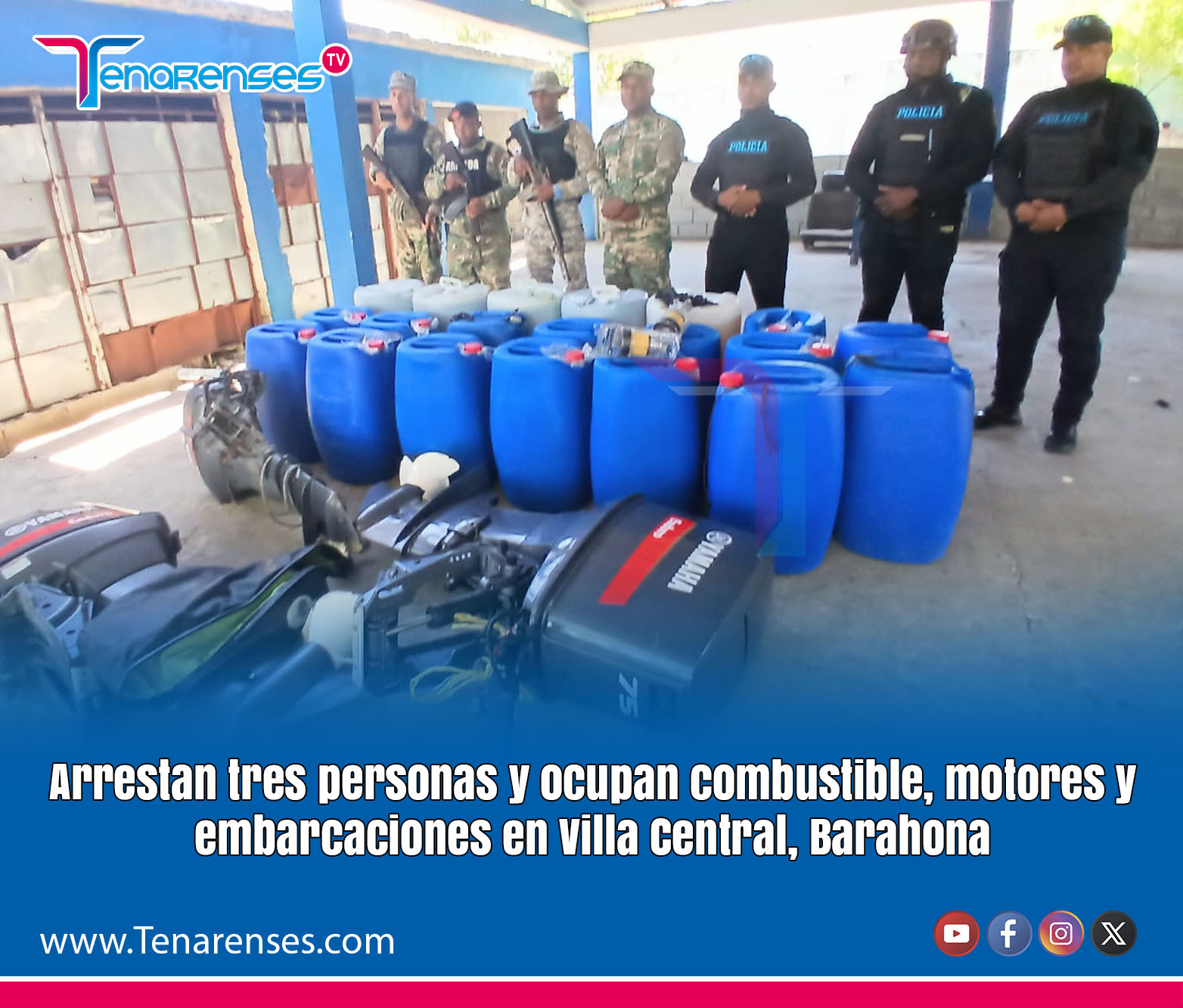 Arrestan tres personas y ocupan combustible, motores y embarcaciones en Villa Central, Barahona