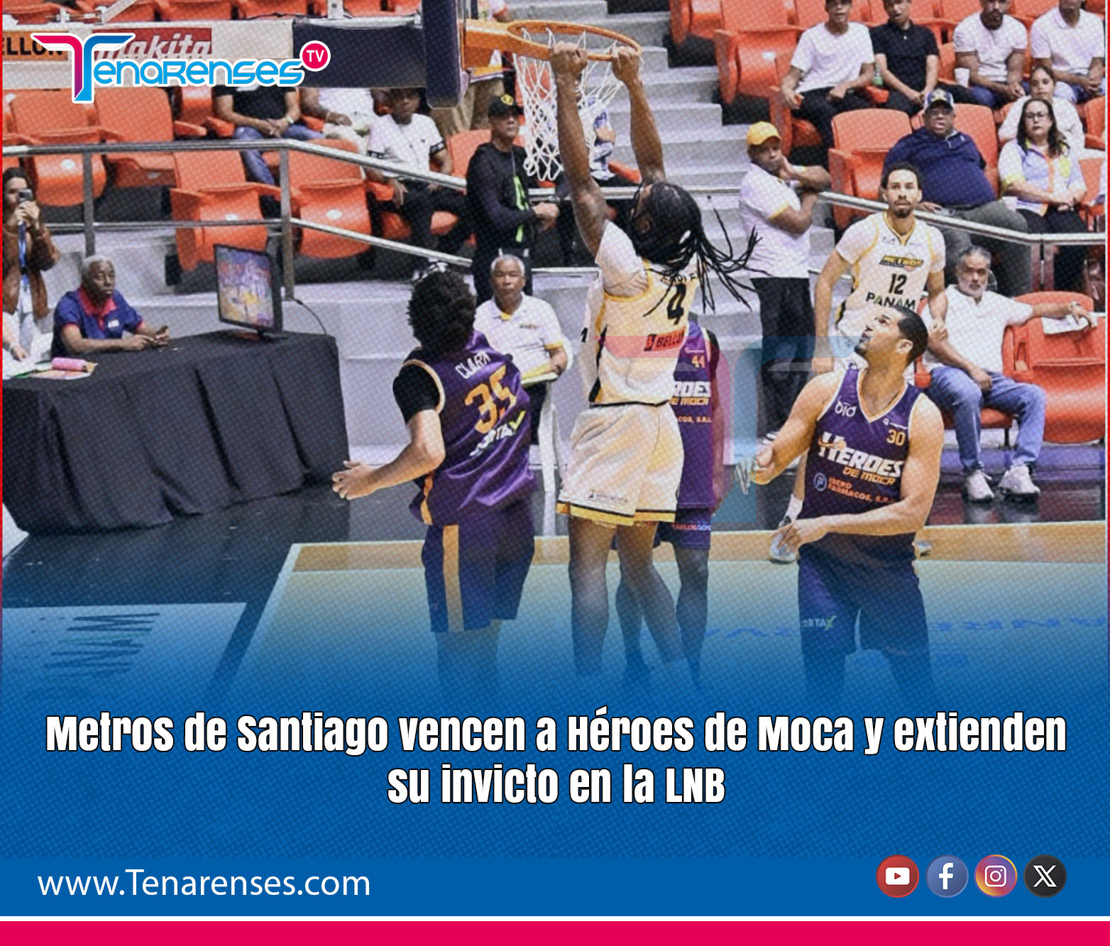 SANTO DOMINGO. – Los Metros de Santiago superaron 91-84 a los Héroes de Moca en un encuentro disputado en Santiago de los Caballeros, resultado que les permitió mantener su invicto en la actual temporada de la Liga Nacional de Baloncesto.
